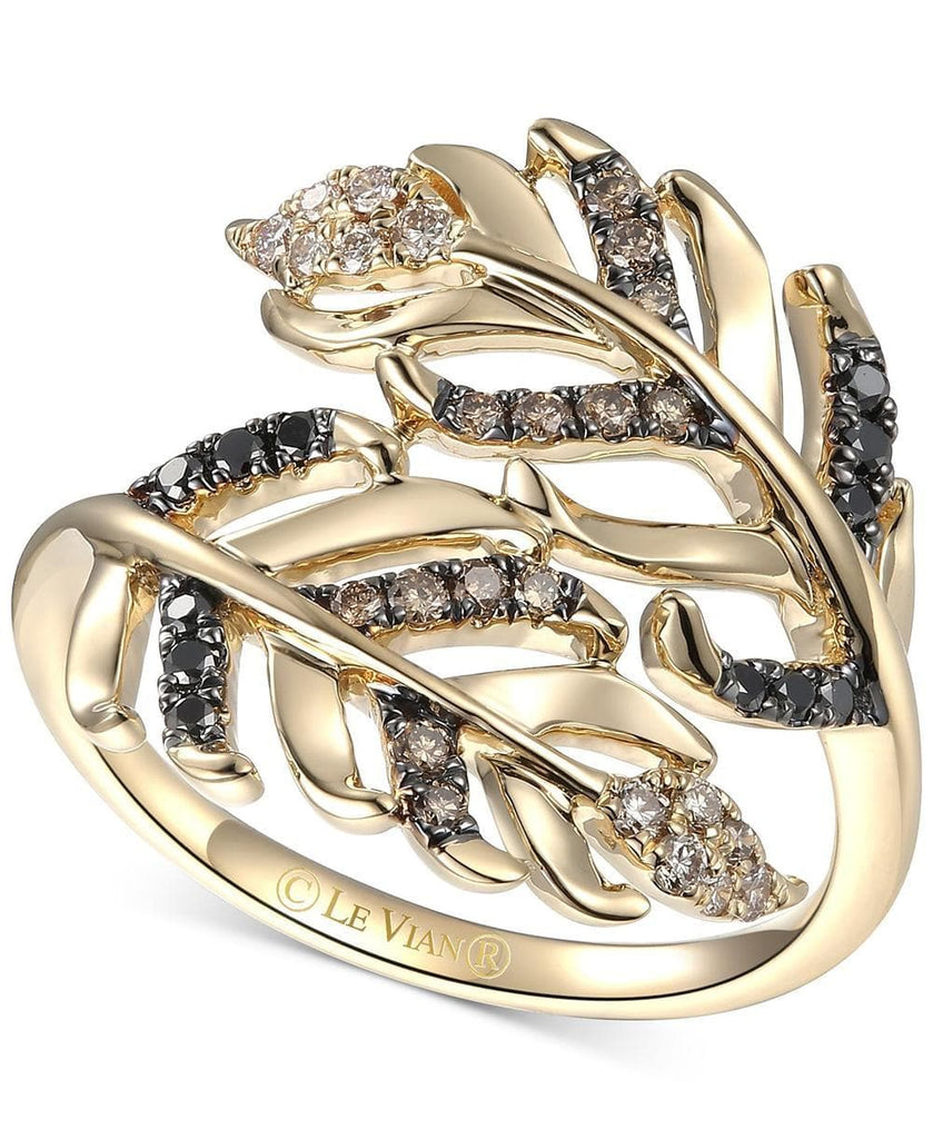 14K Yellow Gold 1/5Ct Diamond Layered Fashion Ring