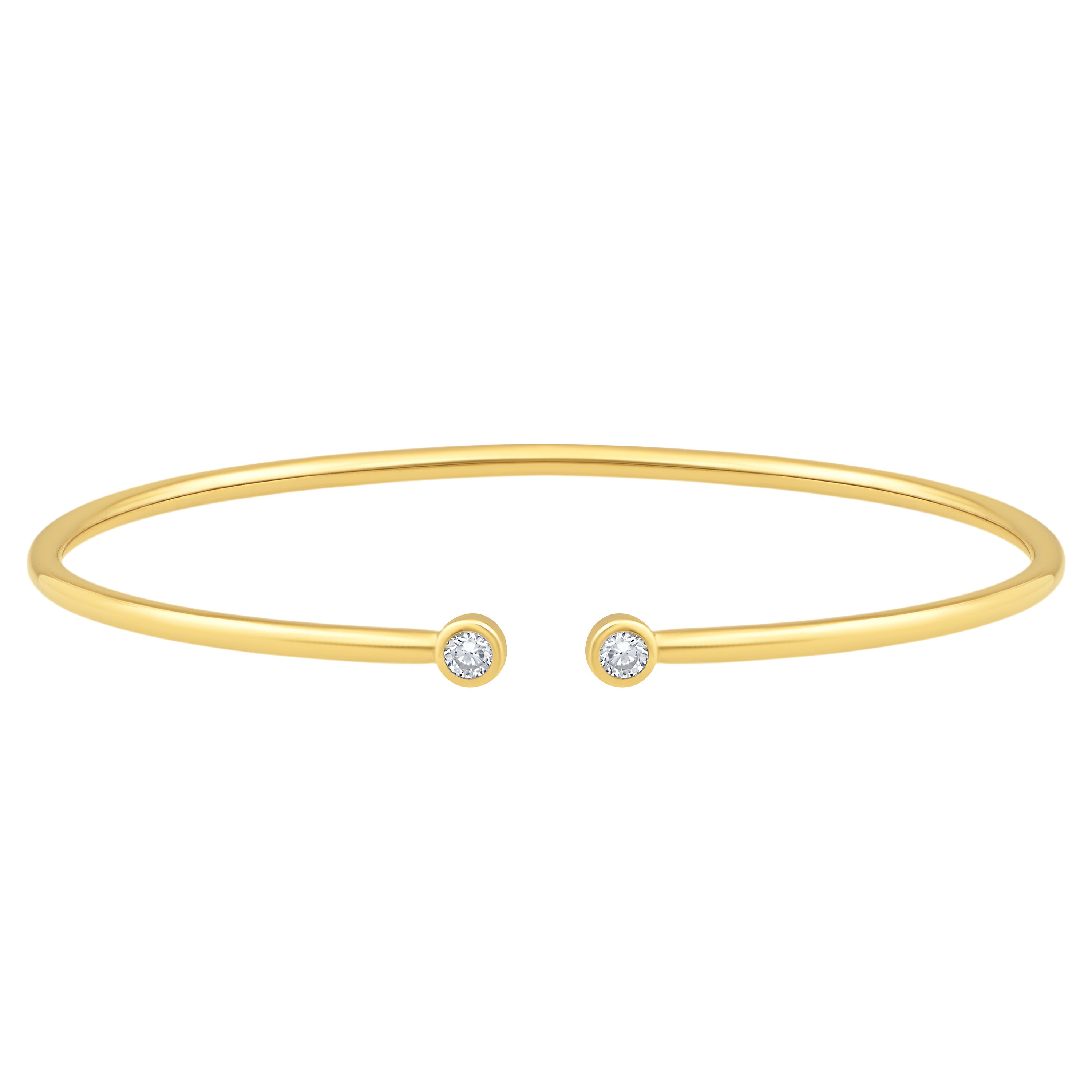 STERLING SILVER AND 14KT YELLOW GOLD PLATED LAB GROWN DIAMOND BEZEL SET CUFF BRACELET 2RD LAB GROWN DIAMONDS APPROX. 1/6CTW GH/SI 6.50"