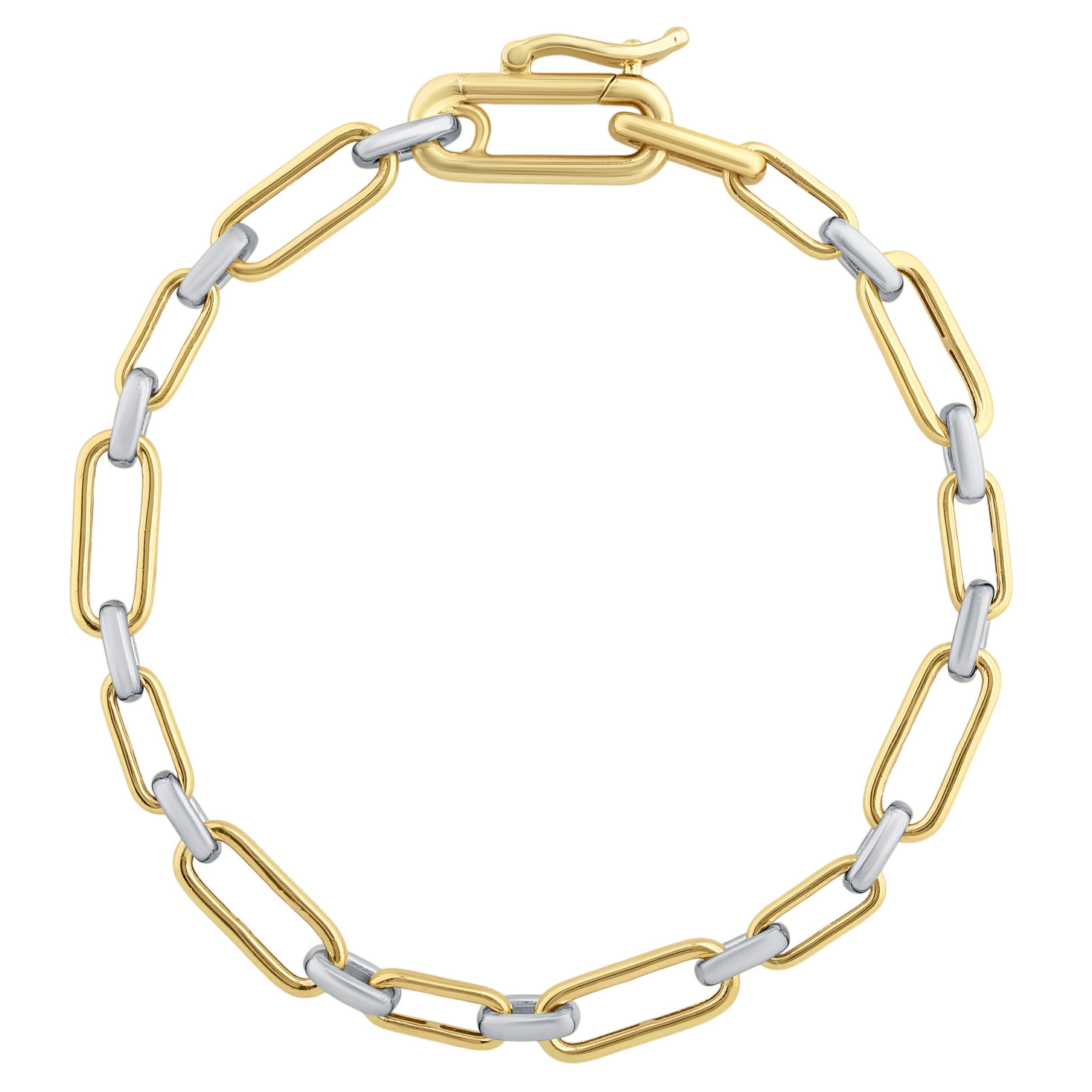 STERLING SILVER AND 14KT YELLOW GOLD PLATED POLISHED PAPERCLIP LINK BRACELET 7.25"