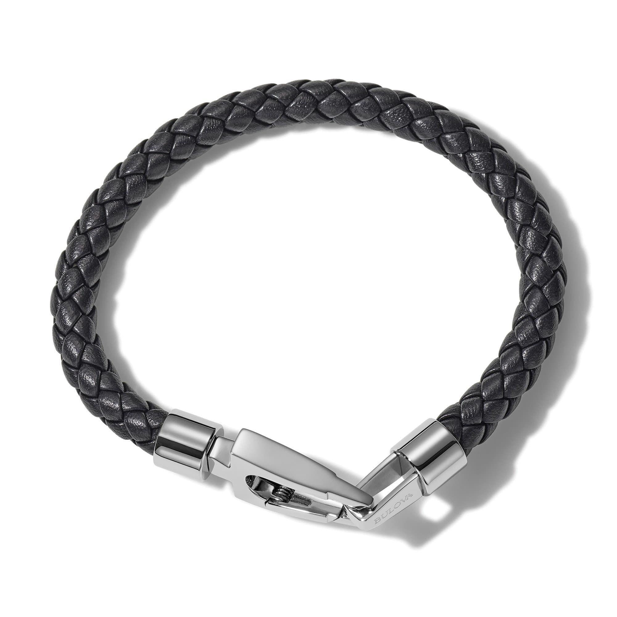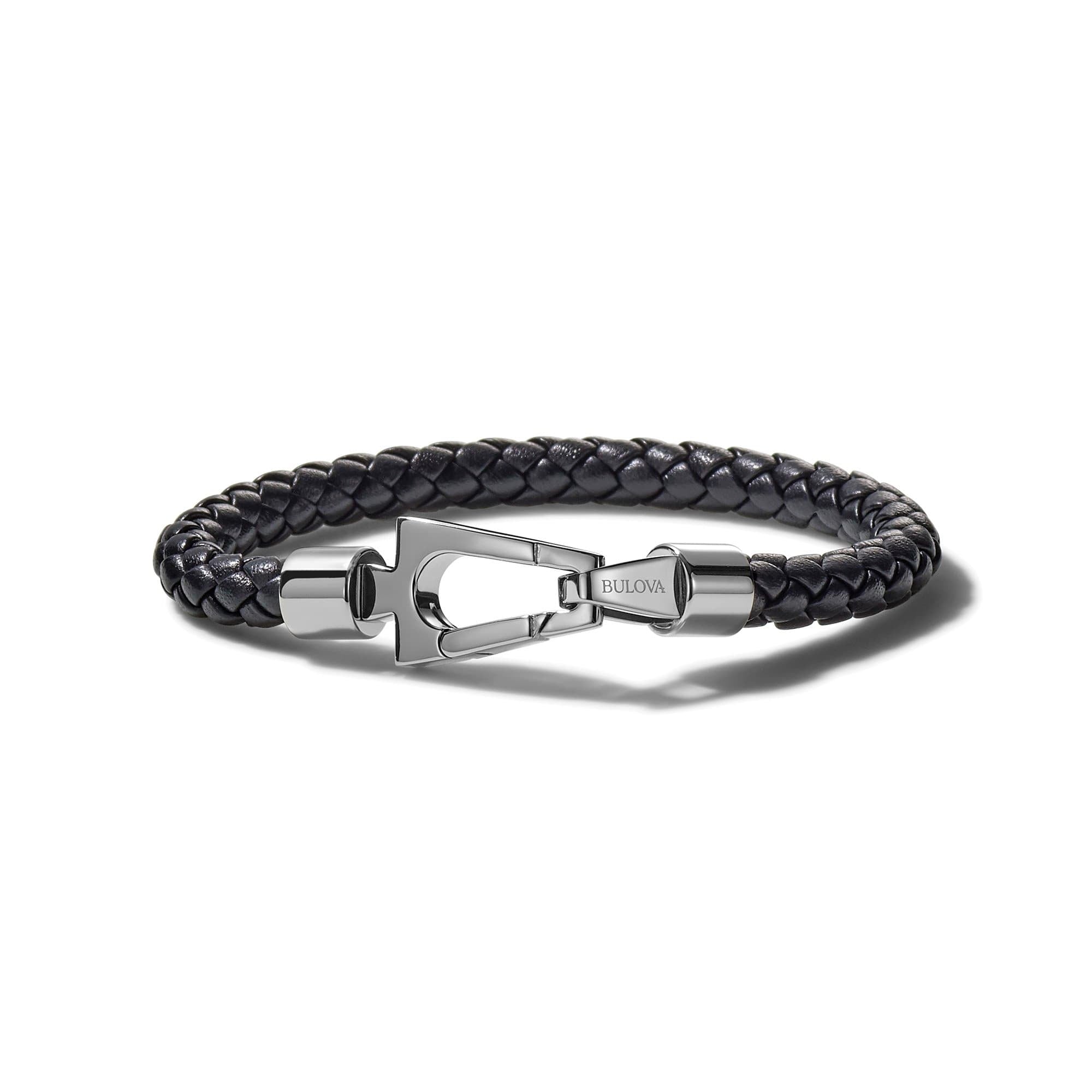 Inspired by nautical ropes and color codes, this braided leather bracelet in classic black offers endless layering possibilities. The bracelet is anchored by a stainless steel signature tuning fork clasp.