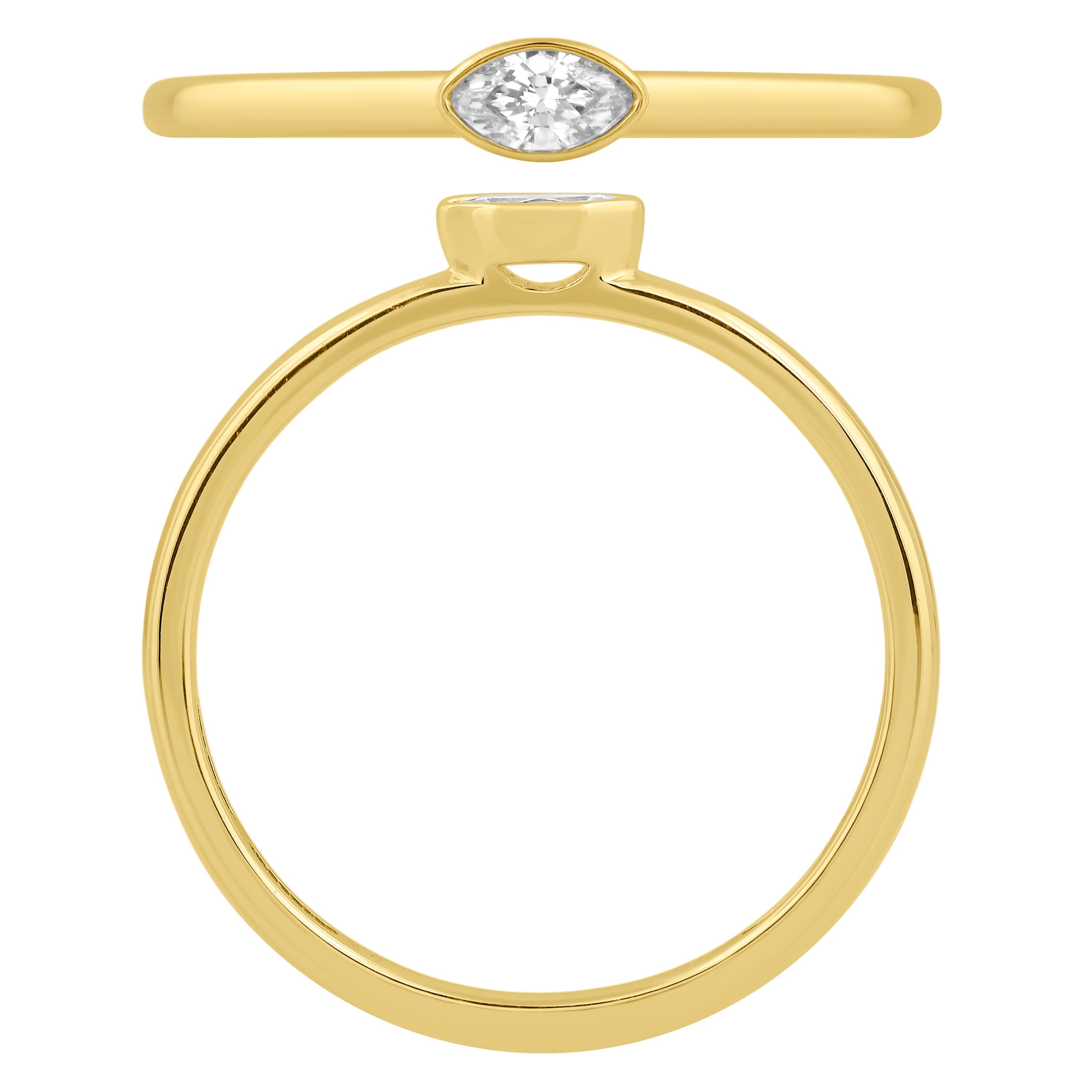 STERLING SILVER AND 14KT YELLOW GOLD PLATED BEZEL SET MARQUISE LAB GROWN DIAMOND STACKABLE RING APPROX. 1/10CT GH/SI