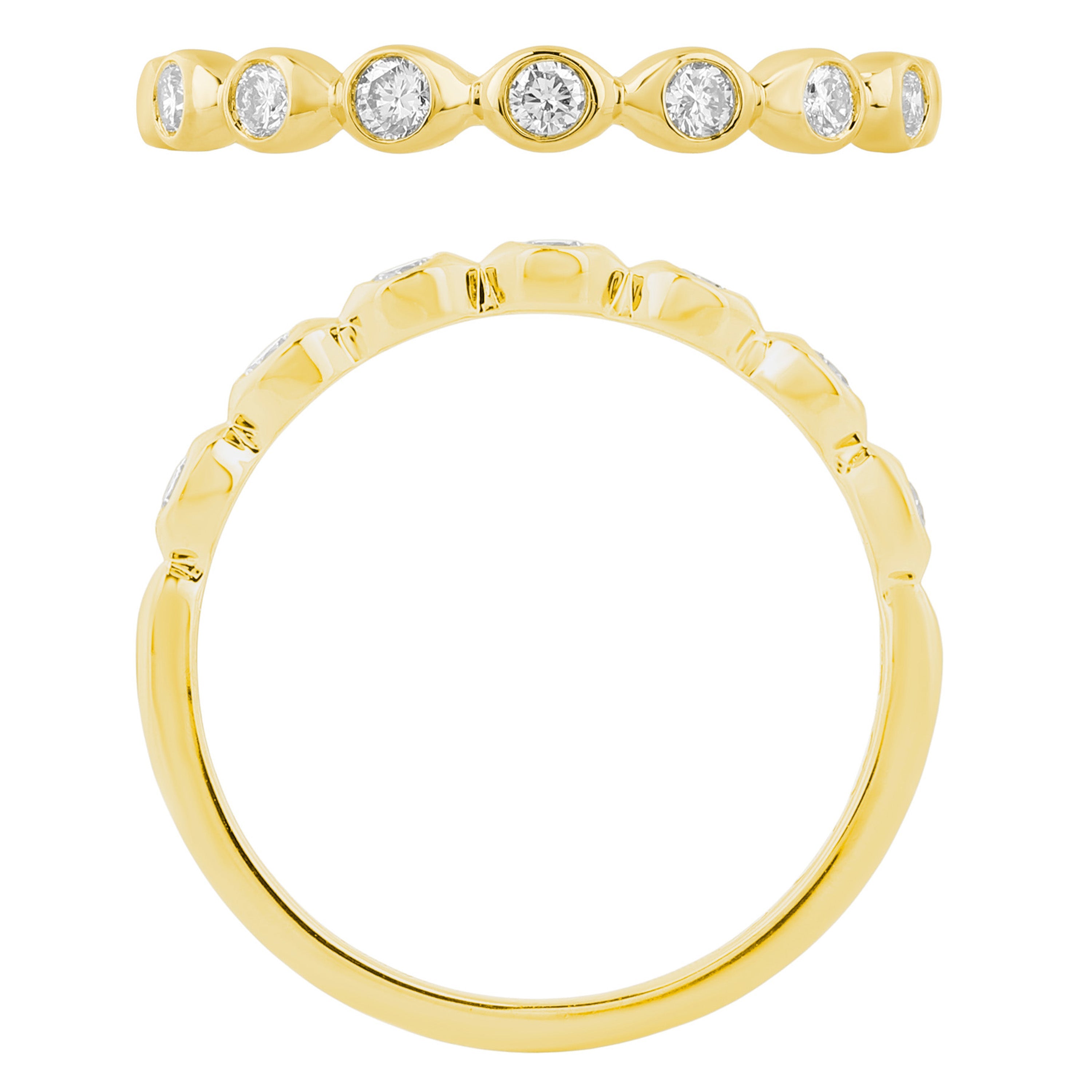 STERLING SILVER AND 14KT YELLOW GOLD PLATED LAB GROWN BEZEL ROUND BAND WITH 7RD LAB GROWN DIAMONDS APPROX. 1/5CTW GH/SI