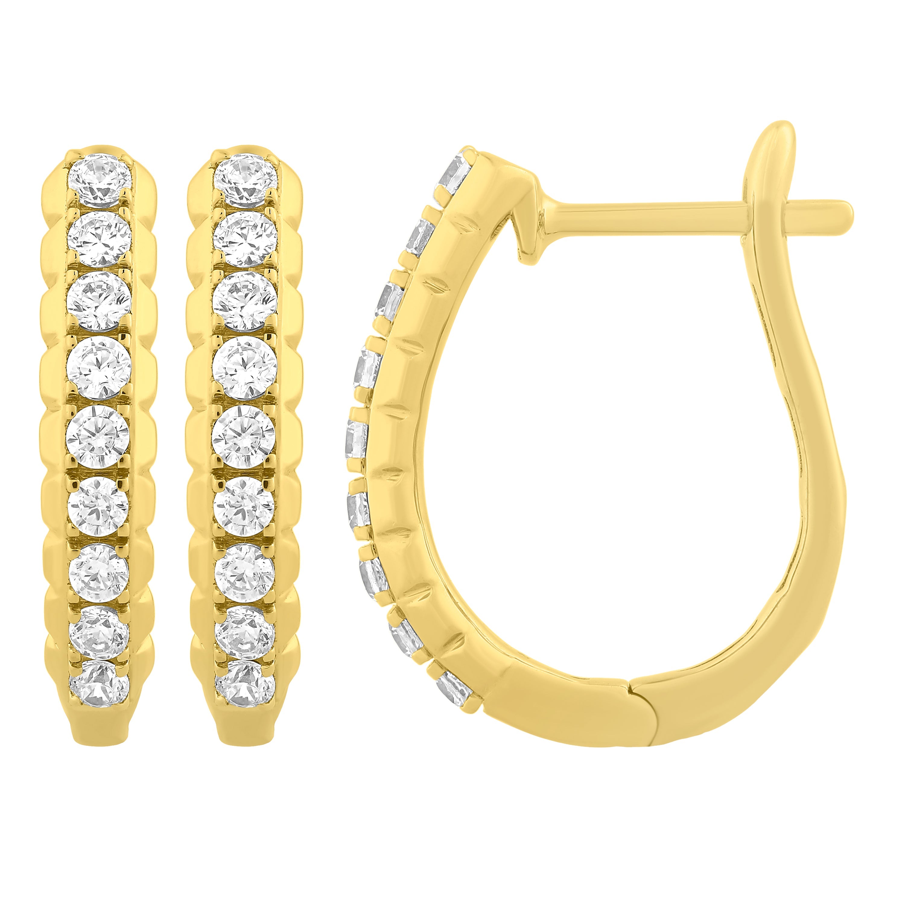 STERLING SILVER AND 14KT YELLOW GOLD PLATED LAB GROWN DIAMOND CHANNEL HOOP EARRINGS WITH 18RD LAB GROWN DIAMONDS APPROX 1/2CTW GH/SI