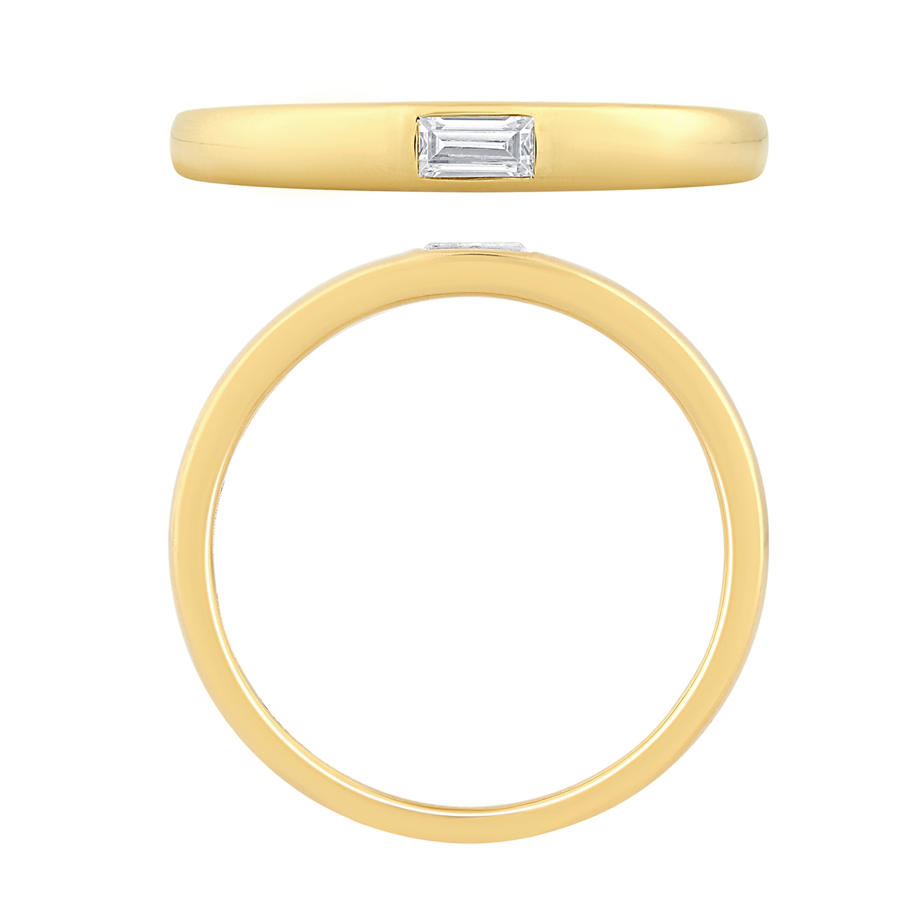 STERLING SILVER AND 14KT YELLOW GOLD PLATED DOME RING WITH BURNISET EMERALD LAB GROWN DIAMOND APPROX. 1/10CTW GH/SI