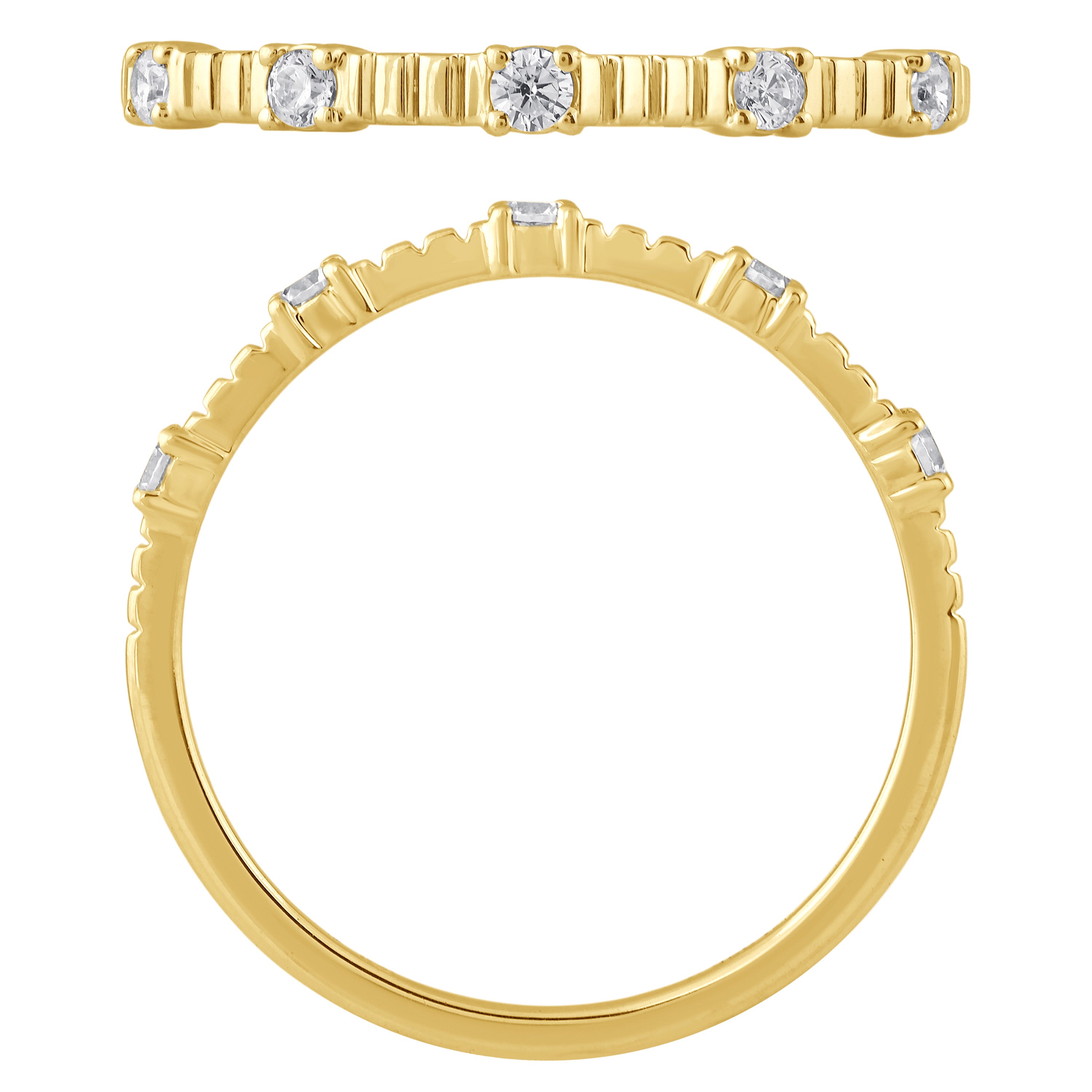 STERLING SILVER AND 14KT YELLOW GOLD PLATED RIDGED BAND WITH 5RD LAB GROWN DIAMONDS APPROX. 1/8CTW GH/SI