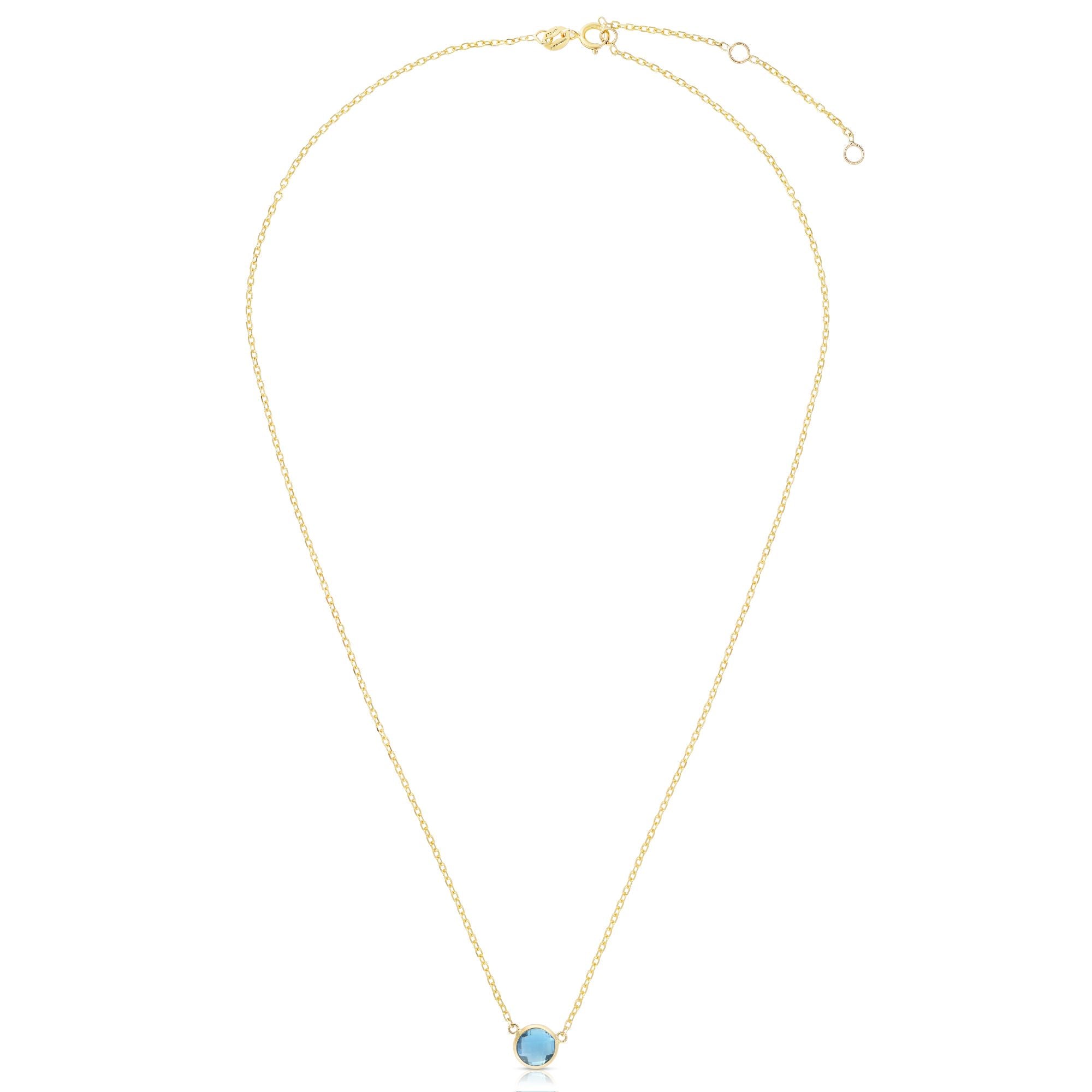 14K Yellow Gold 17in Semi-Precious Round Blue Topaz Solitaire Necklace